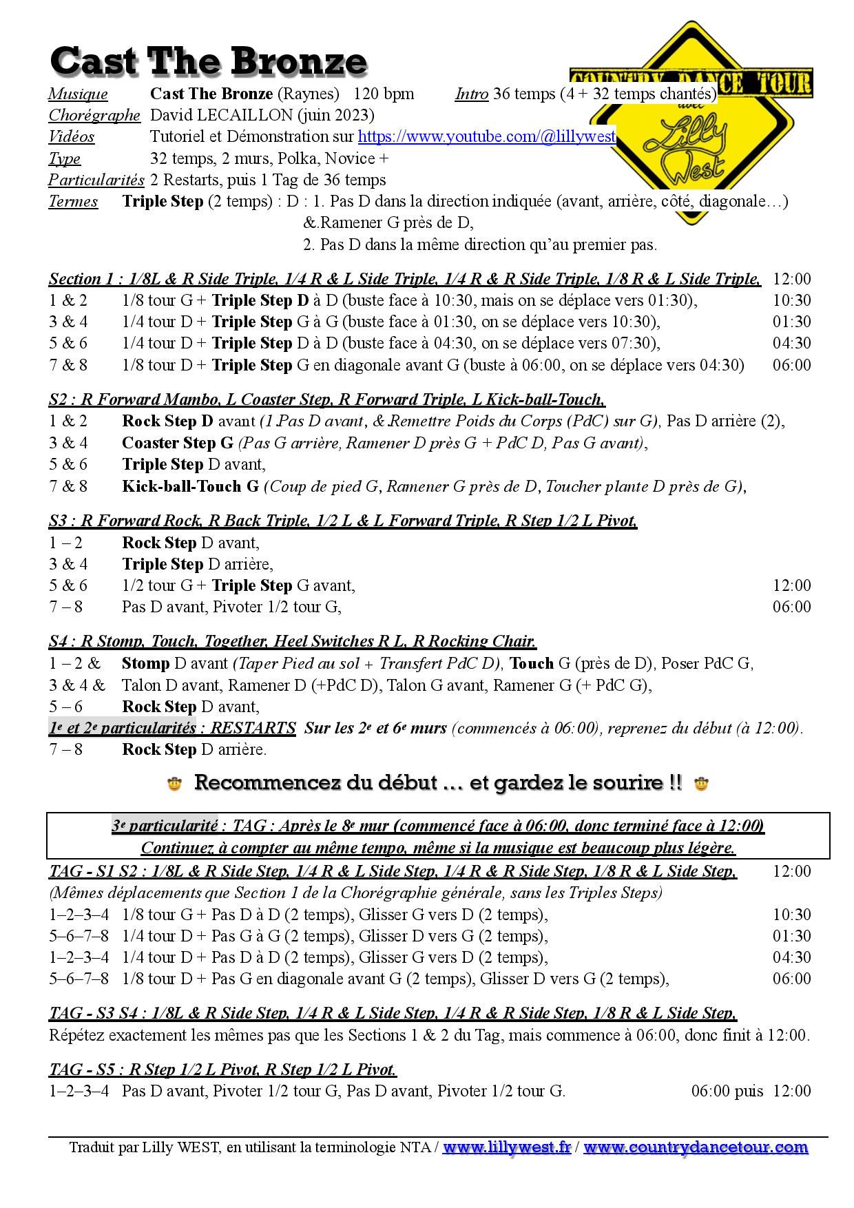 [COURS] CAST THE BRONZE de David LECAILLON, enseignée par Lilly WEST (Country Dance Tour)