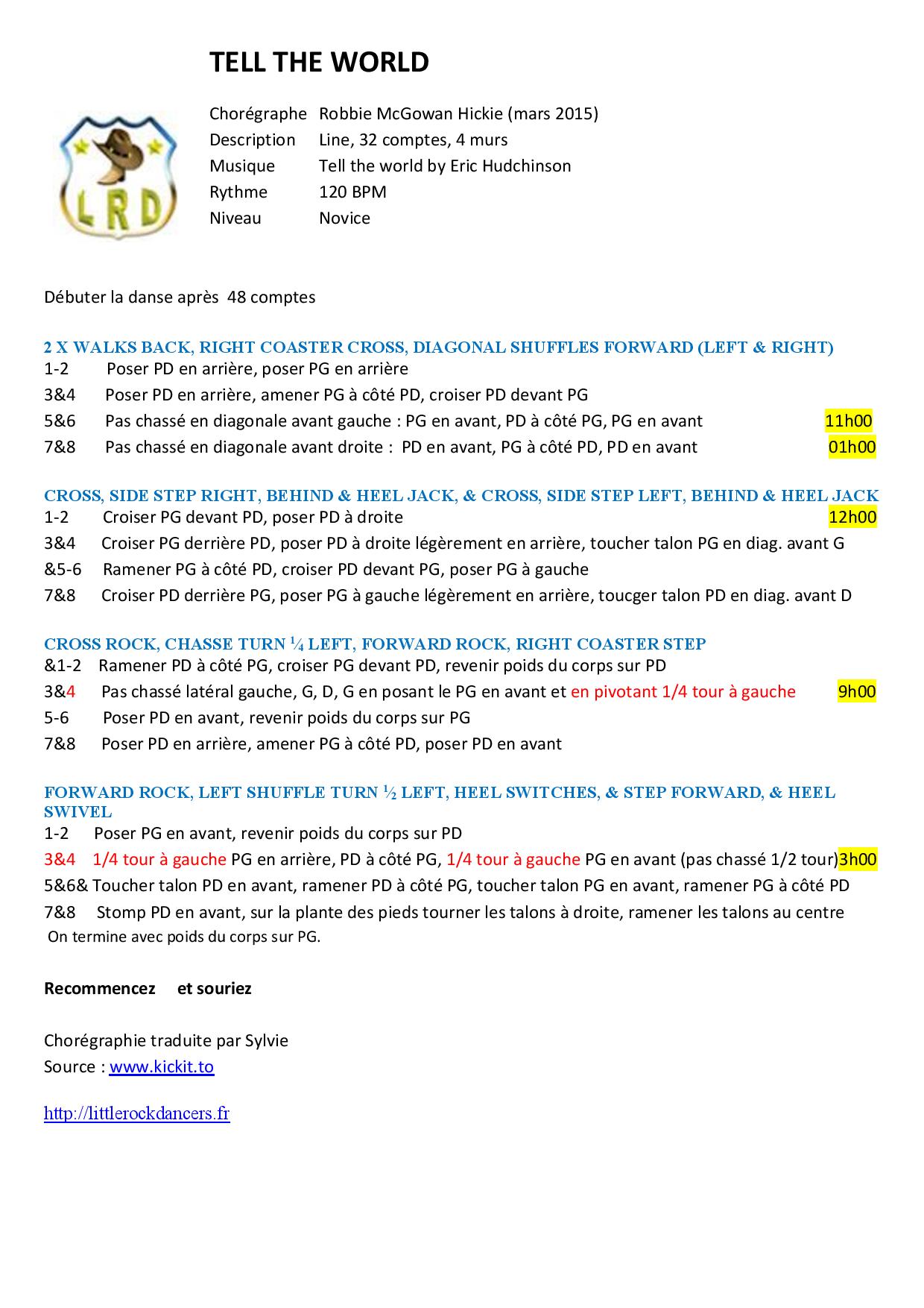 Feuille de danse : Tell the World