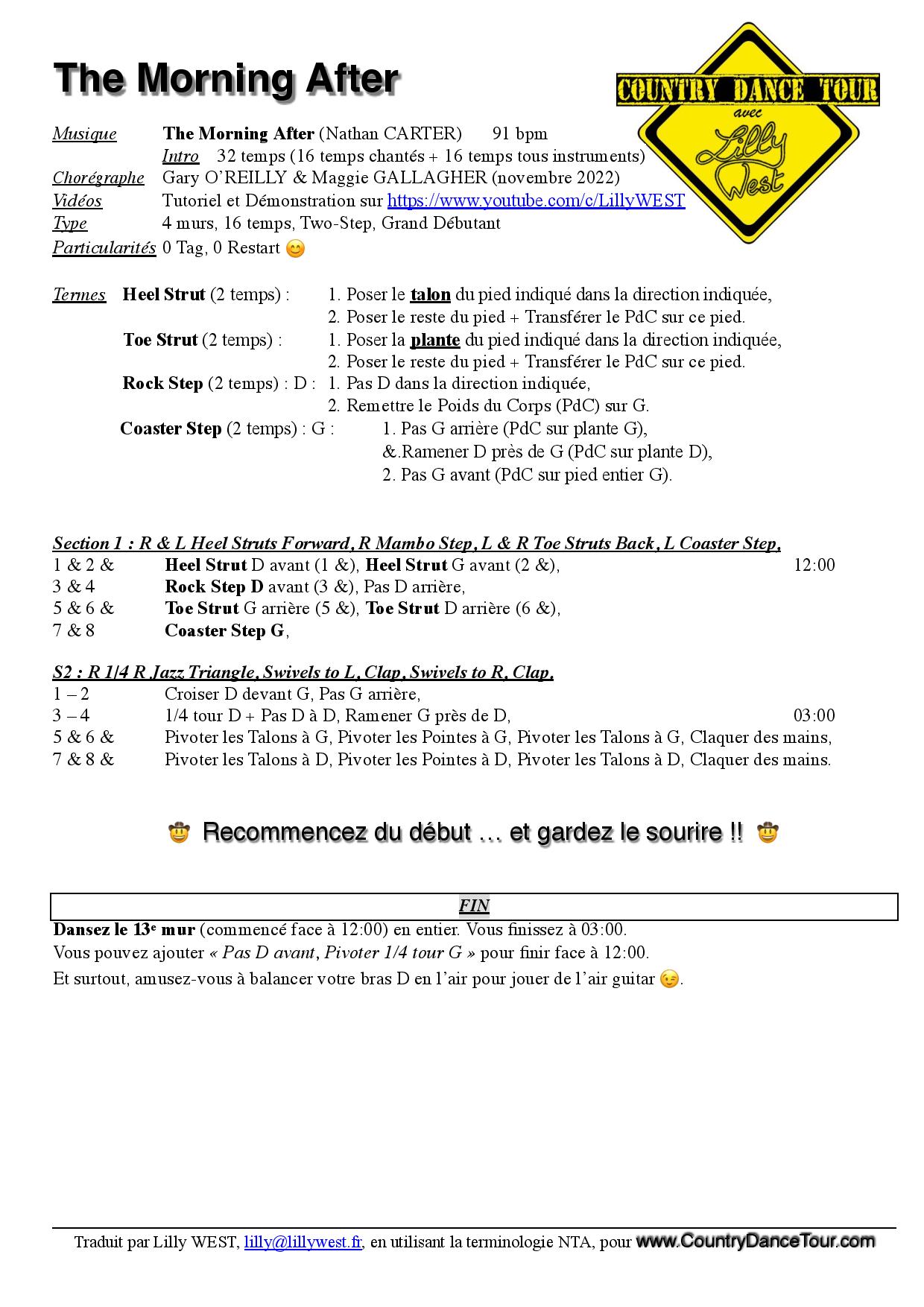 [COURS] THE MORNING AFTER de Maggie GALLAGHER & Gary O’REILLY, enseignée par Lilly WEST (Country Dance Tour)